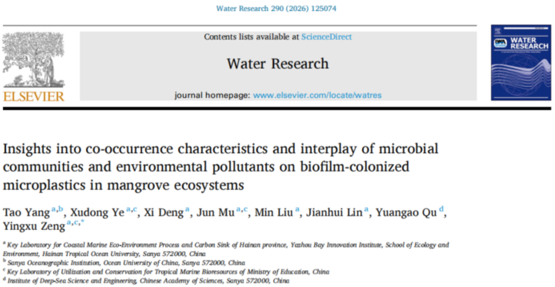 曾映旭教授团队研究成果在环境领域顶级期刊《...