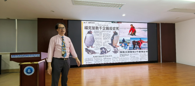 讲座中,何建宗教授以“从中国到极地,化藻华灾害为一石多鸟的盈利产业”为主线,深入浅出的向师生介绍了从业四十余年来在国内与南、北极极地所开展的藻类方面相关研究,详尽介绍了如何将微藻从诱发“红潮”等灾害的公敌蜕变为污水净化乃至可带来丰厚经济价值的产业这一全过程。报告内容拓宽了与会师生在日后从事学术科研工作中的思路想法。