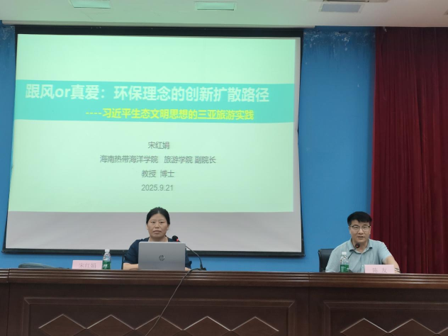 9月21日晚,beat365在线唯一官网为2025级新生举办“认识海南自贸港”主题教育讲座。本次讲座由宋红娟教授主讲,讲座聚焦自贸港背景下旅游社区环保议题,以习近平生态文明思想的三亚旅游实践为切入点,为新生搭建起自贸港发展与生态保护的认知桥梁。