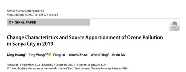 近日,beat365官网资源与环境专业硕士研究生黄鼎作为第一作者,王平副教授为文章通讯作者,我校为第一单位,在环境科学领域国际期刊《Aerosol Science and Engineering》(中科院四区,2023年影响因子为1.6)上发表题为“Change Characteristics and Source Apportionment of Ozone Pollution in Sanya City in 2019”的学术论文。