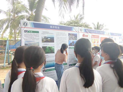 团队还进行了多次科普活动,提升公众对海洋生物的保护意识,同时呼吁大家关爱海洋、认识海洋、保护海洋,关注海洋健康,守护蓝色家园。利用专业所学开展了以“海洋碳汇,储碳固碳,保护海岸”为主题的科普活动,向师生们展示了海洋的重要性,加深了对海洋的认识。在“世界海洋日”“全国海洋宣传日”暨三亚社区教育系列活动中,团队在西岛开展海洋及海洋牧场知识科普等,向广大市民、学生展示和讲解,号召全社会参加到保护海洋保护中去。